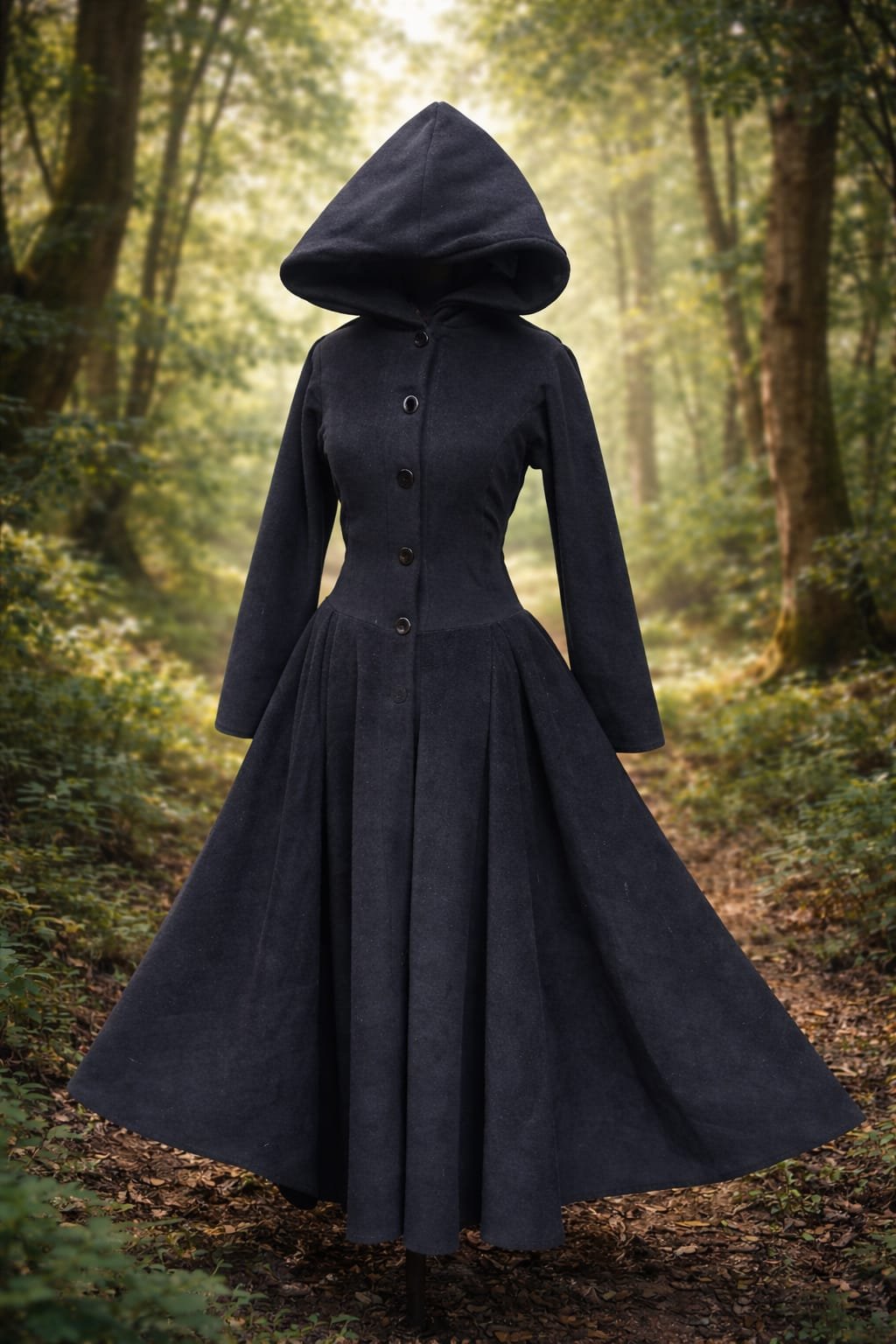 Abrigo de micropolar largo, falda plato con detalles de pliegues