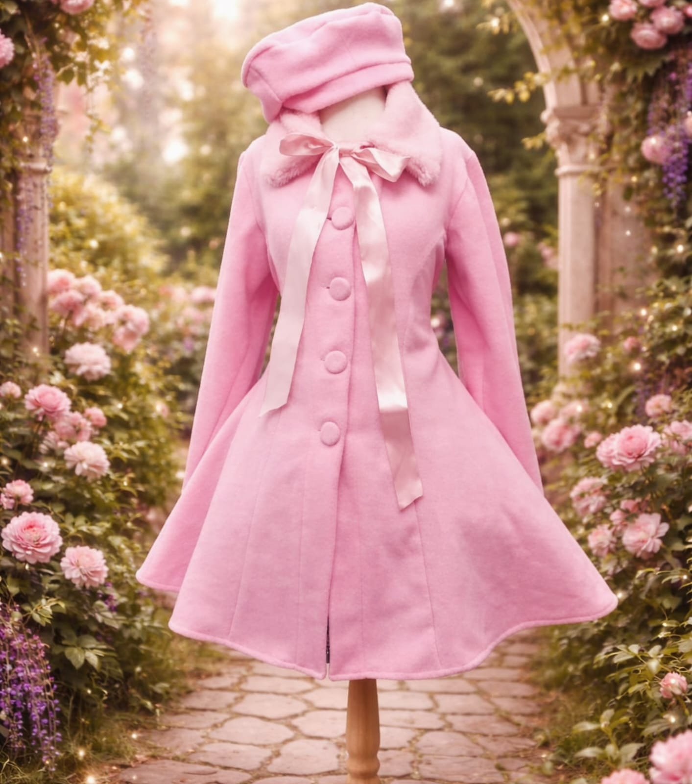 Abrigo de micropolar acampanada con lindos detalles en cuello de piel sintética, más lazo, más boina.