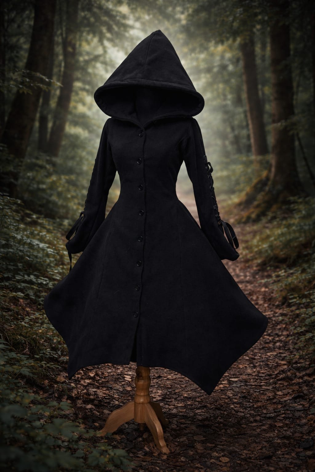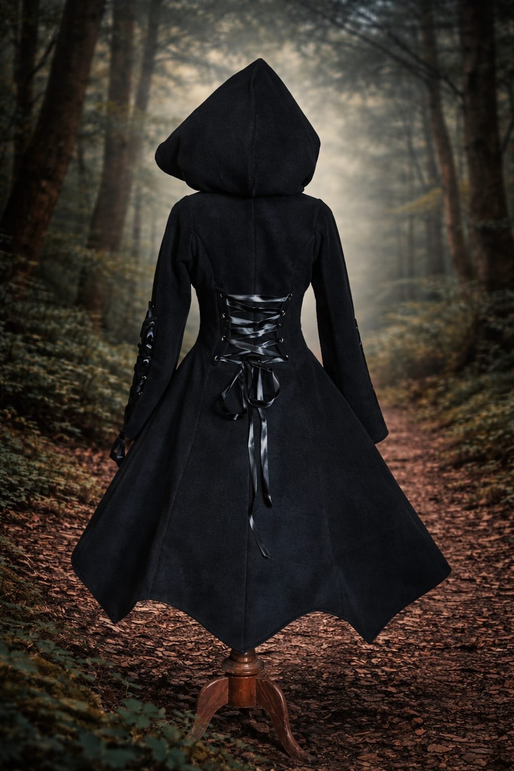 Abrigo diseño en punta de micropolar con mangas acampanada y detalles de corset en mangas y espalda.