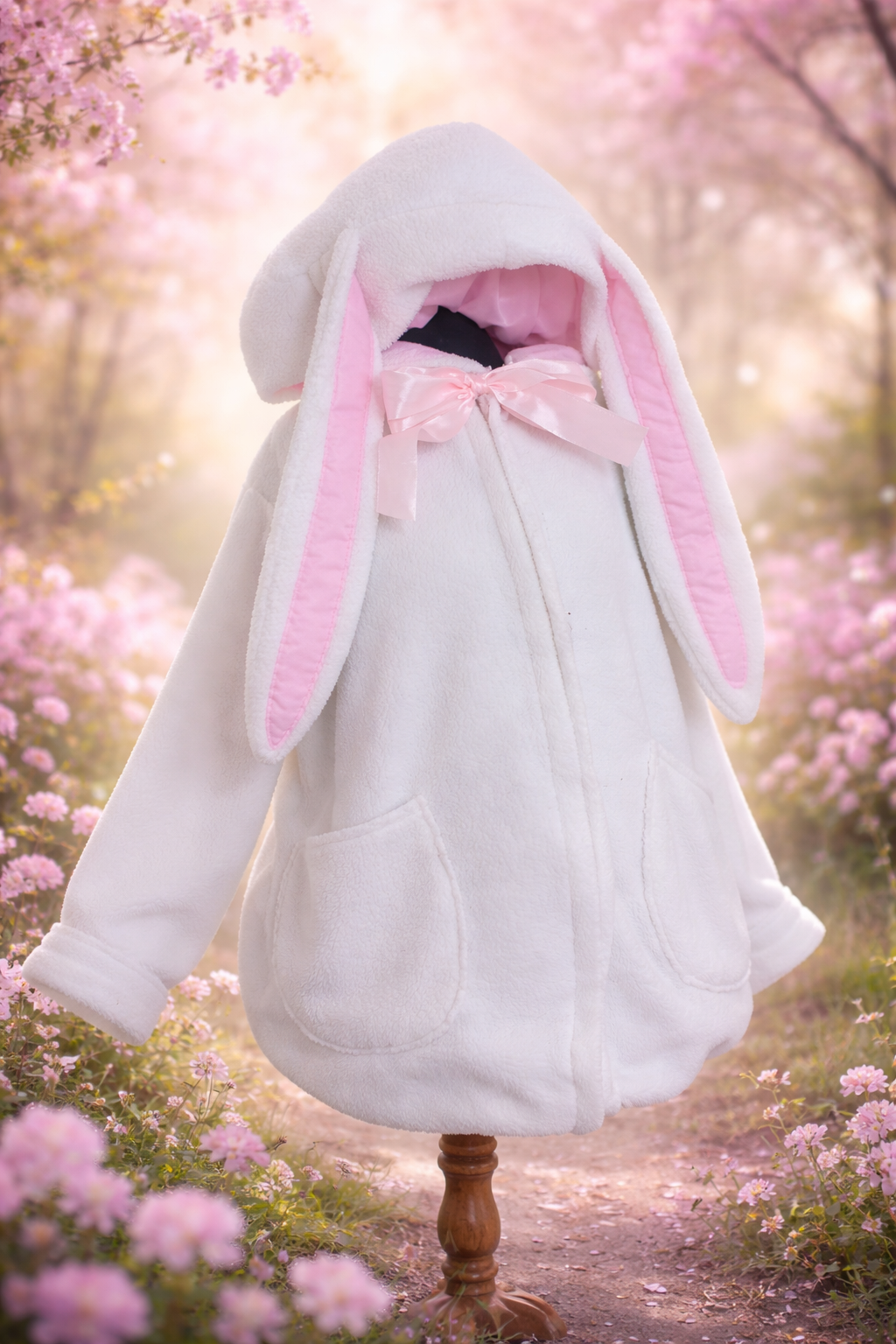Poleron de conejitos de chiporro con cierre detalles en rosa.