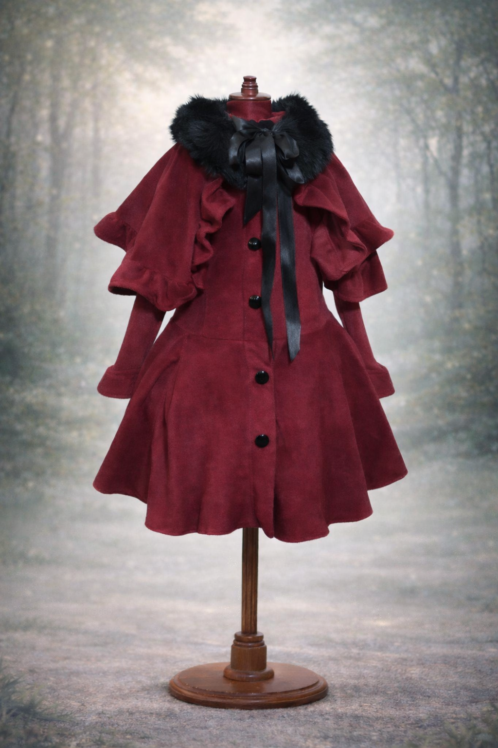 Abrigo micropolar más capa, detalles de cuello de piel para niños.