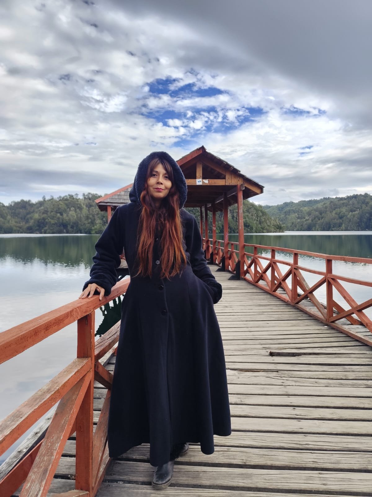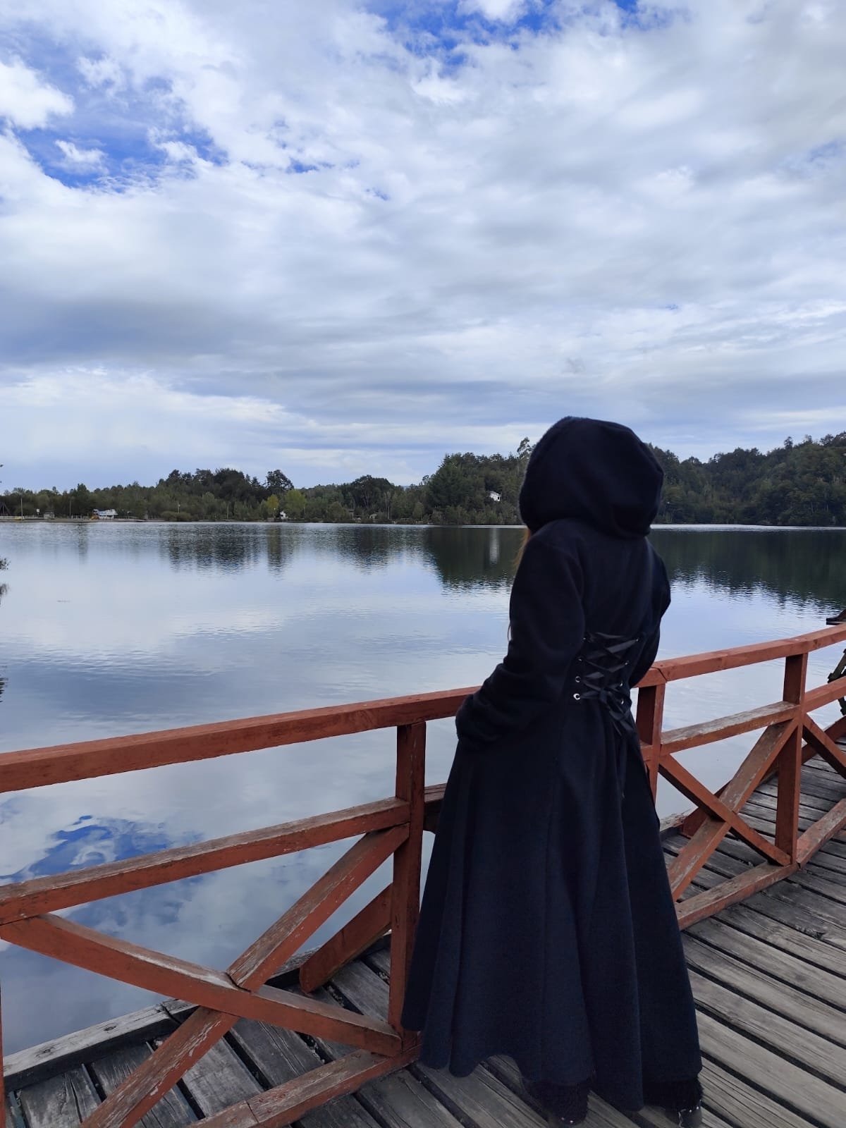 Abrigo de micropolar acampanado con lindos detalles de piel sinética en mangas y gorro, corset para ajustar.