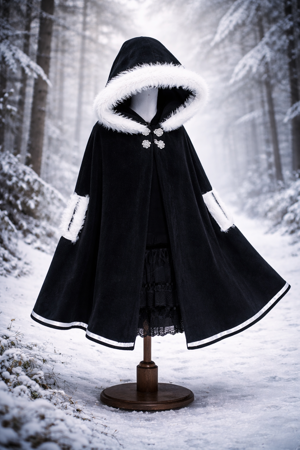 Capa de micropolar detalles botones chinos, hecho a mano, piel sinética en gorro, ojales, detalles de encintado en el ruedo.