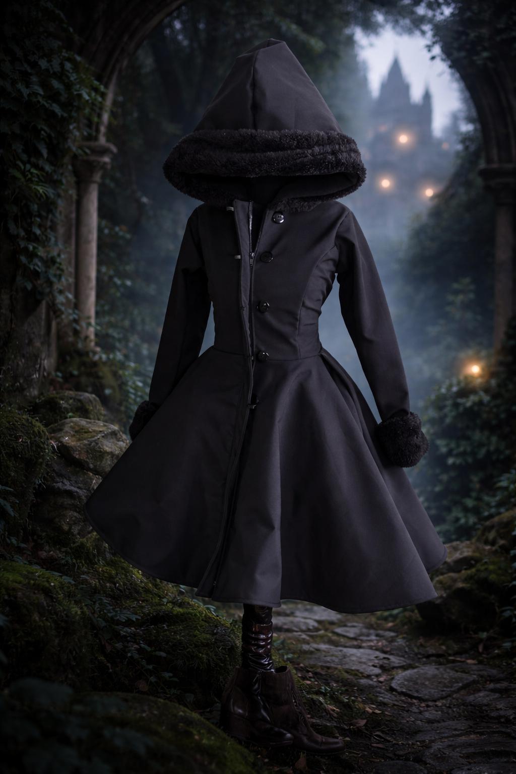 Abrigo impermeable para la lluvia nieves y Frío piel cinética mangas y gorro botones y cierre.